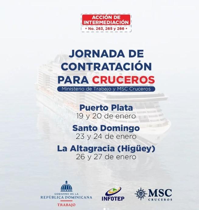 El Ministerio de Trabajo anunció la “Jornada de Empleo de Contratación para Cruceros” que realizará junto al Infotep y MSC Cruceros.